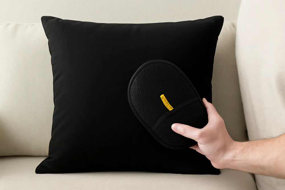 Le gant s’adapte à tout : plaid, tapis, coussins, fauteuil, voiture…